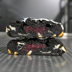 Cookie aterciopelada de red velvet con un centro cremoso de cookie y crema Oreo, acentuada con chips de chocolate blanco.